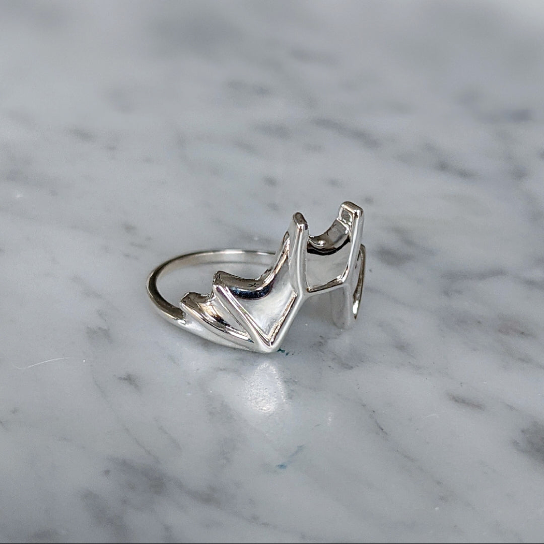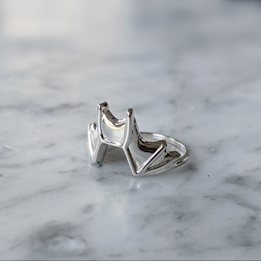 Hand cast bat wing halo ring that fits perfectly atop our Coffin Rings or looks beautiful on it's own.
