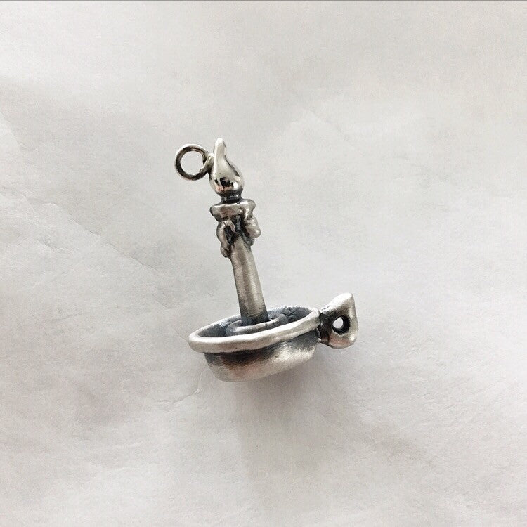 1" tall sterling silver candle and candle stick holder charm cast from a hand carved wax mold and hanging from a sterling silver chain.