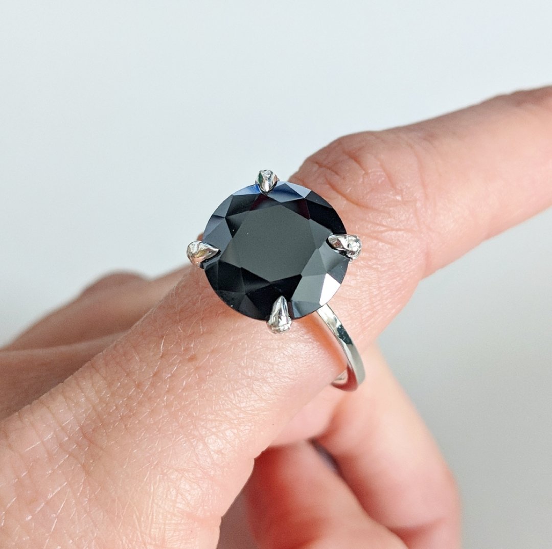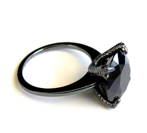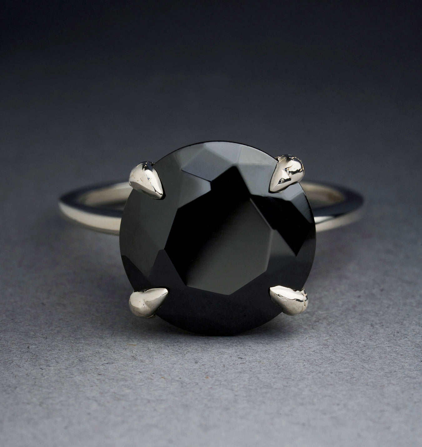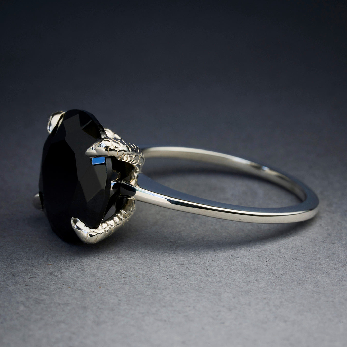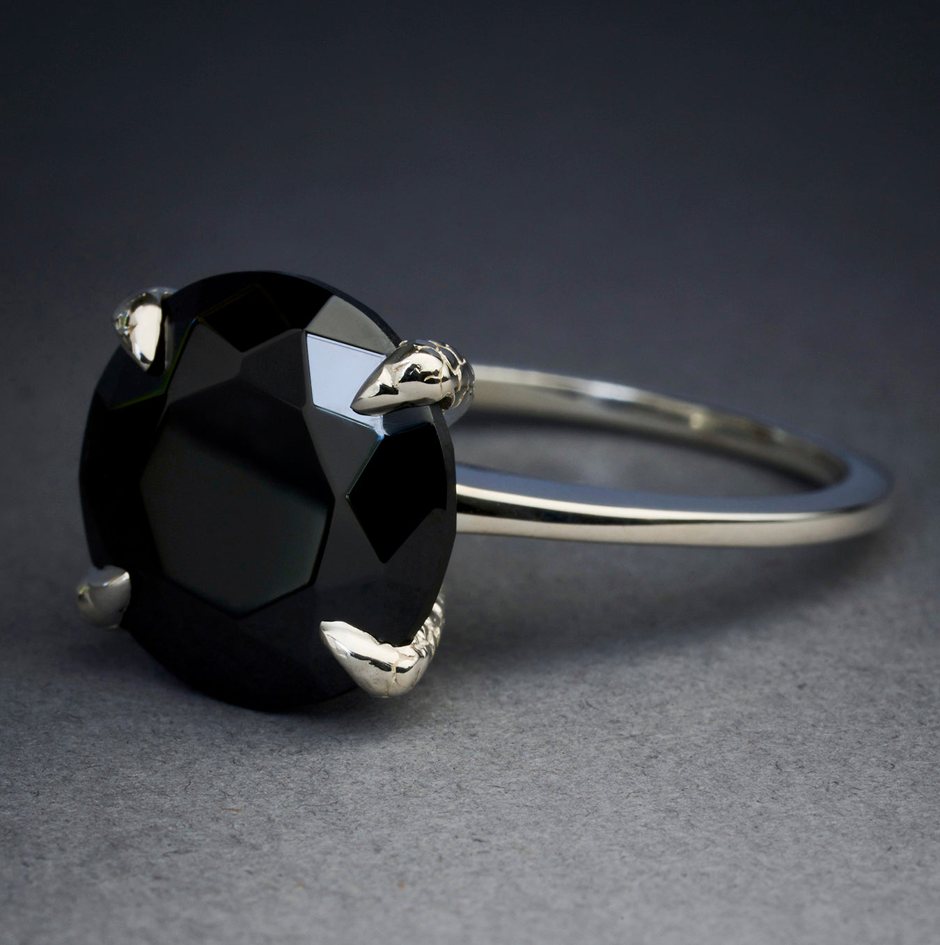 A Leviticus Jewelry original ring design. A unique and beautifully cast talon setting holding a breathtaking large black faceted crystal.