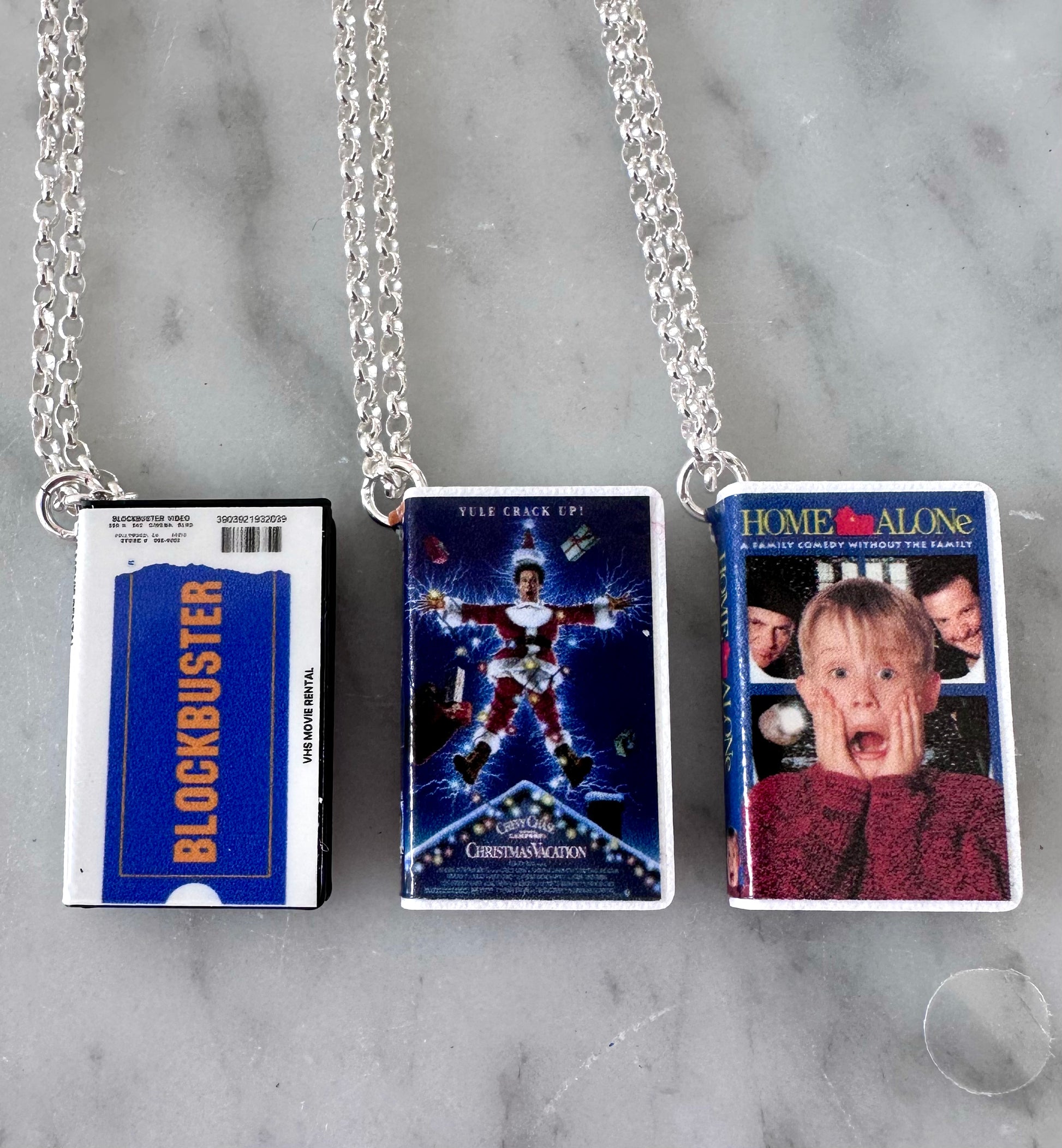 Miniature VHS tape with full original 360 detail! These are 1:12 of the size of a normal VHS tape. Each tape measures 2cm tall and hangs from a sterling silver chain.