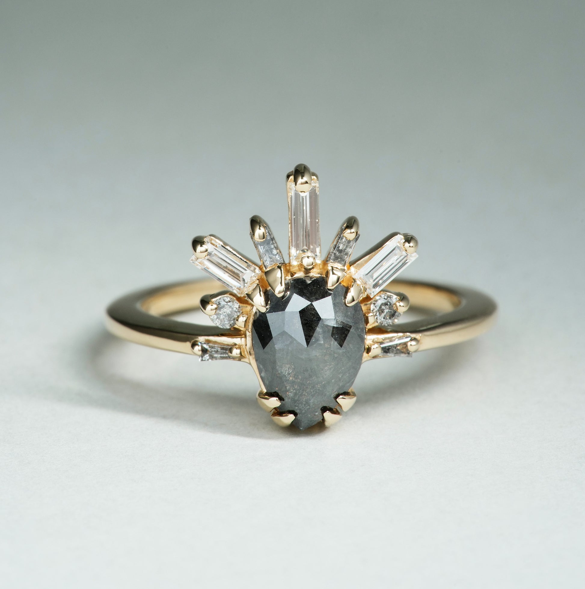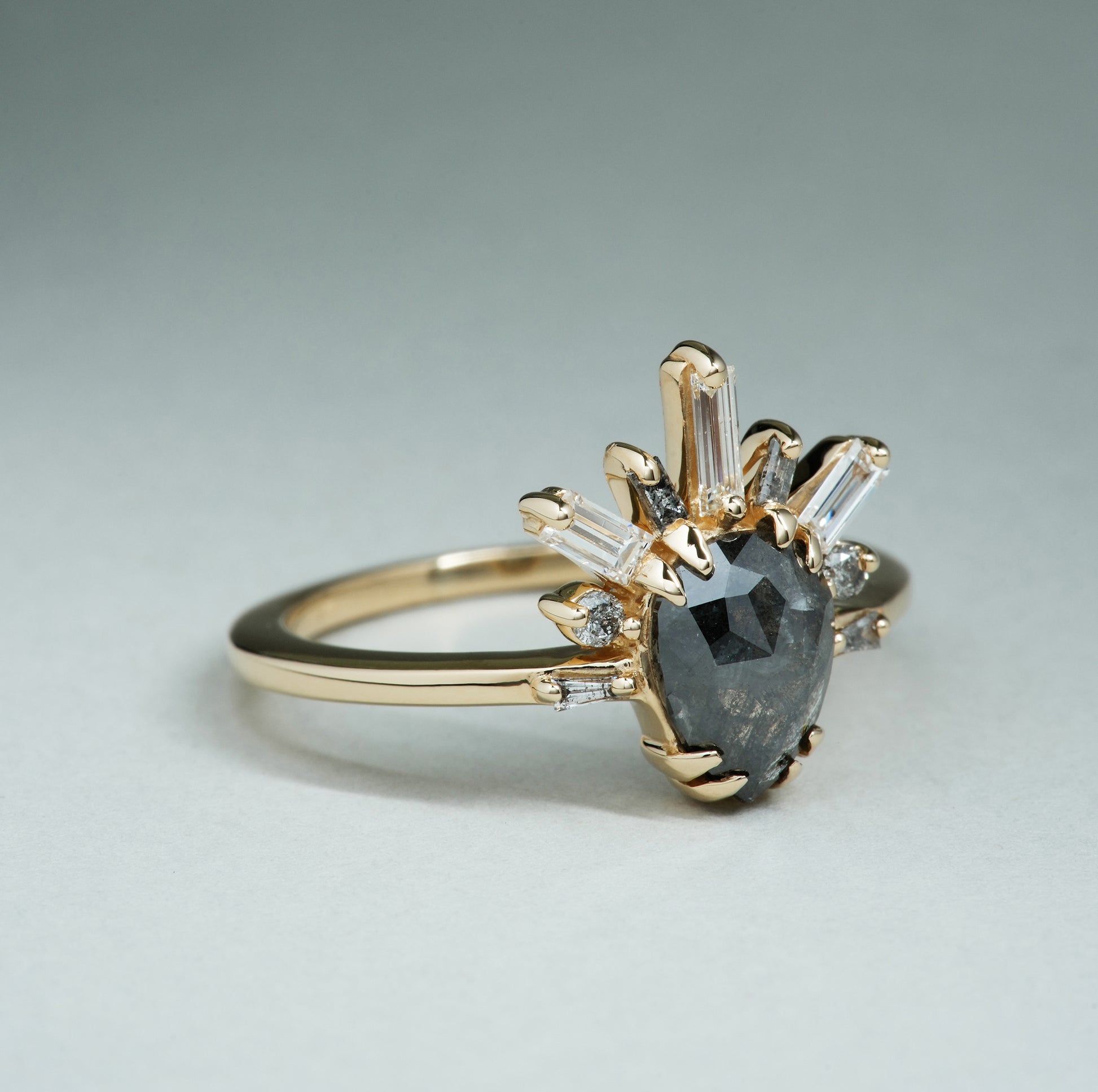 Due to the fact that salt and pepper diamonds are extremely unique, this ring is a one-of-a-kind and there is only 1 available.