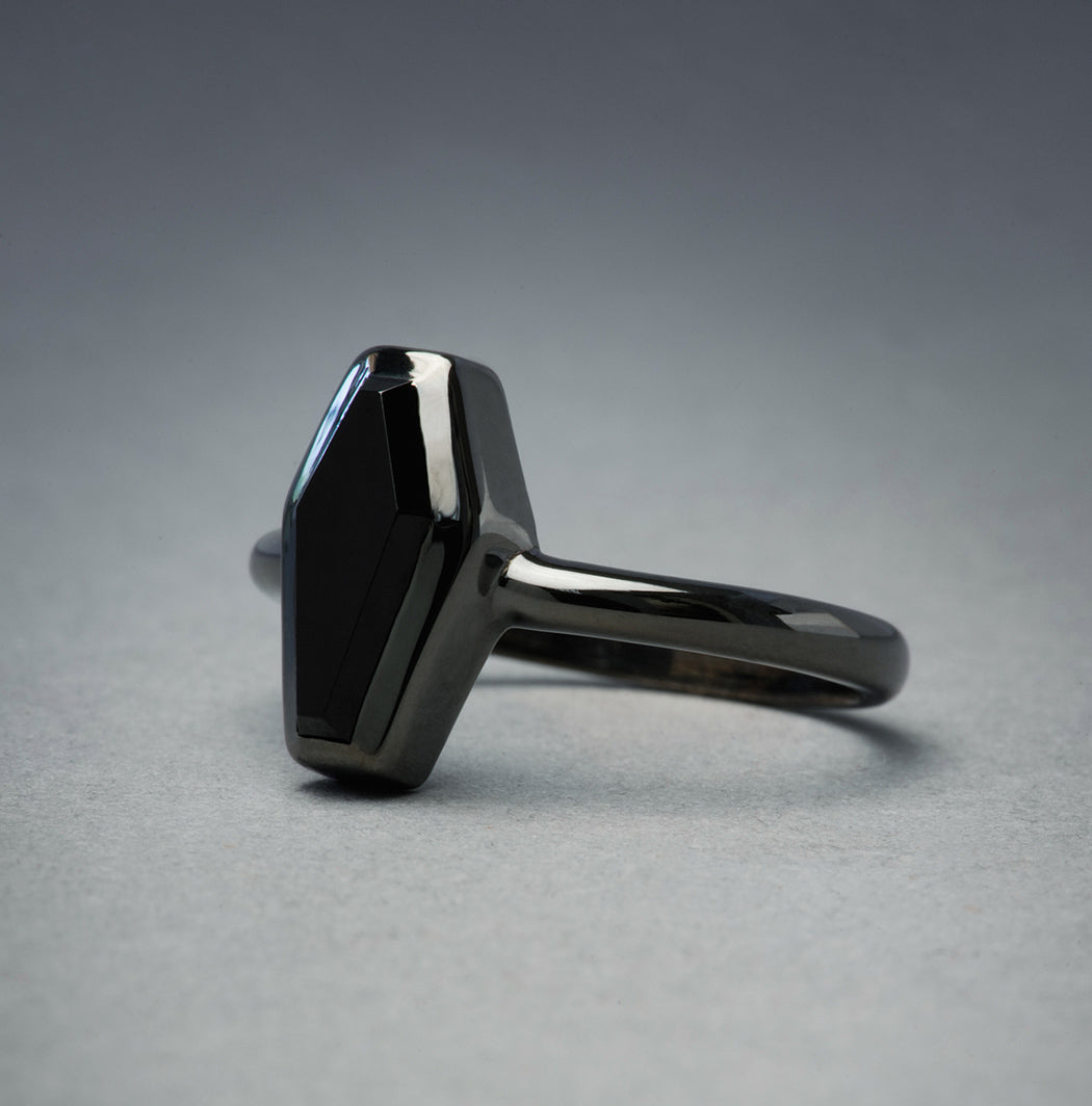 11mm tall coffin cut onyx in your choice of a 10k, 14k, or sterling silver setting.
