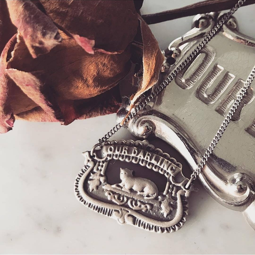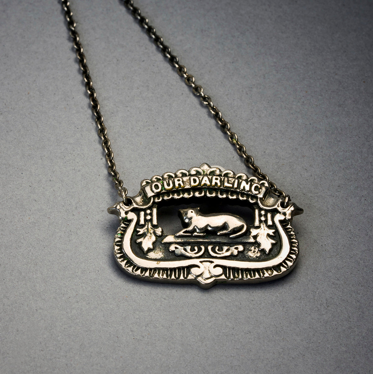 This pendant is a miniature solid sterling silver cast replica of an original antique Victorian children's casket plate hanging from an 18" sterling silver chain.