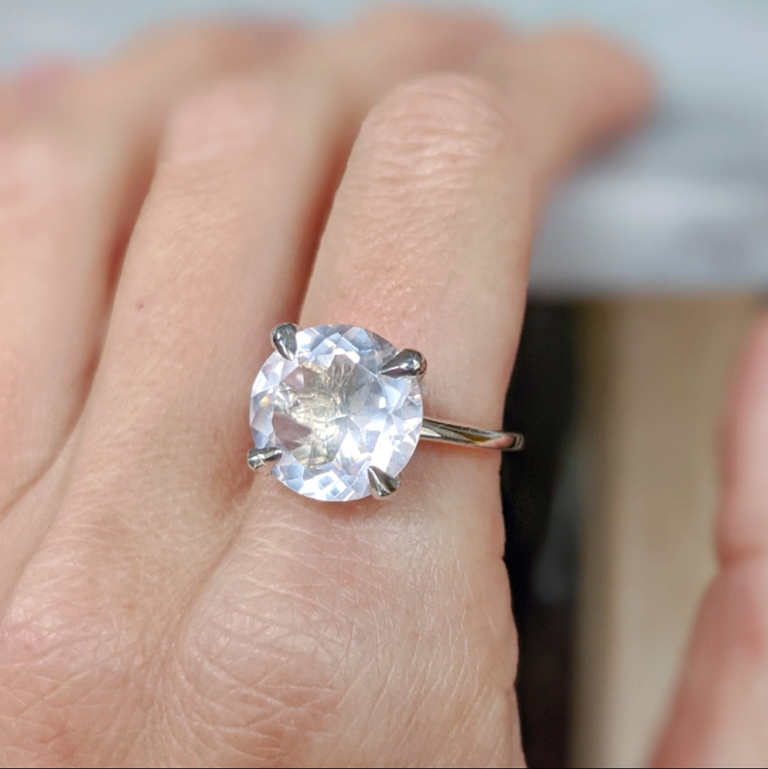 A Leviticus Jewelry original ring design. A unique and beautifully cast talon setting holding a breathtaking large faceted light pink rose quartz.