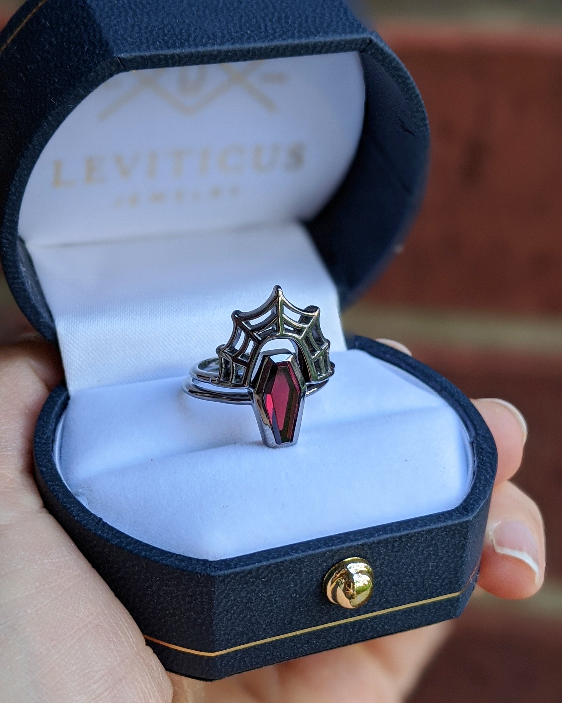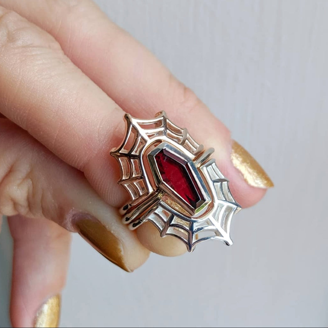 Hand cast spider web ring that fits perfectly atop our Coffin Rings or looks beautiful on it's own.