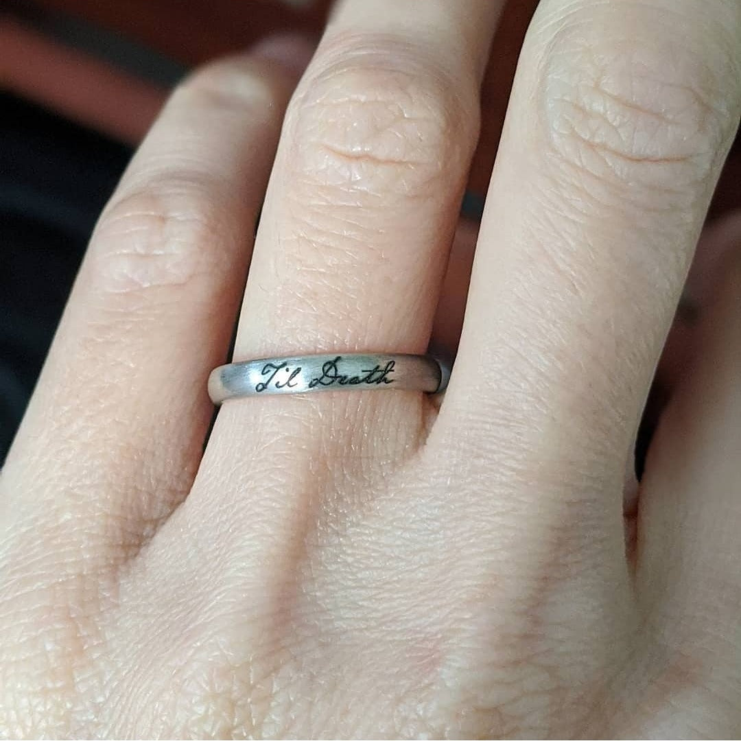 A simple band with "Til Death" on one band and "Do Us Part" on the other.