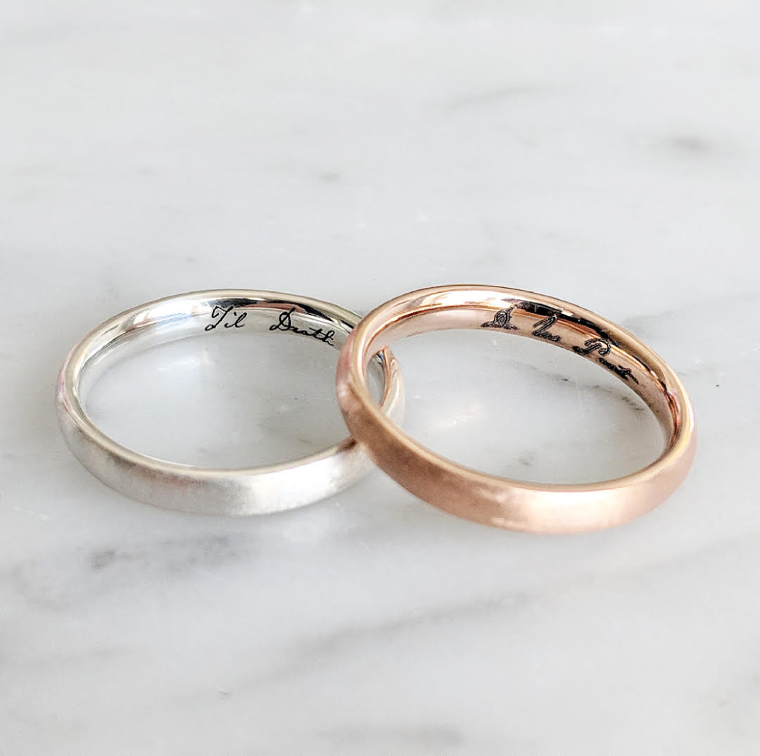The engraving can also be put on the outside of the band. Simply leave note during checkout stating that you would like the engraving on the outside as opposed to the inside.