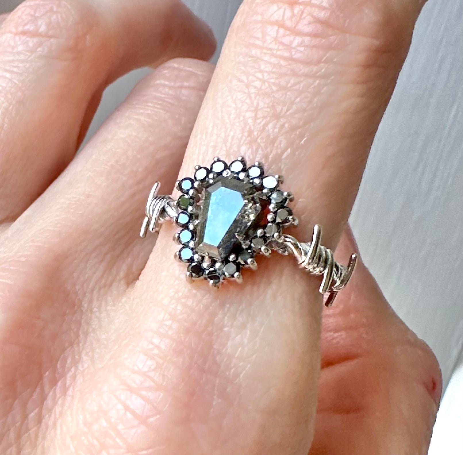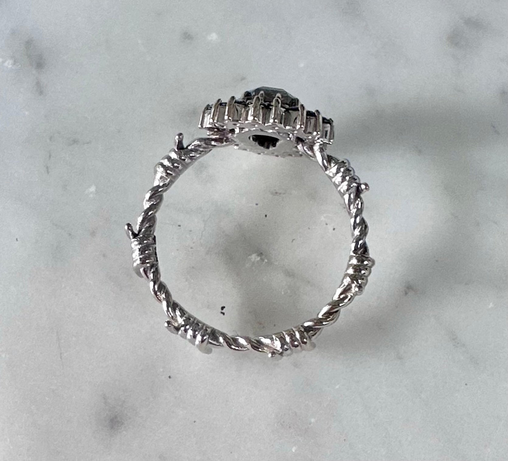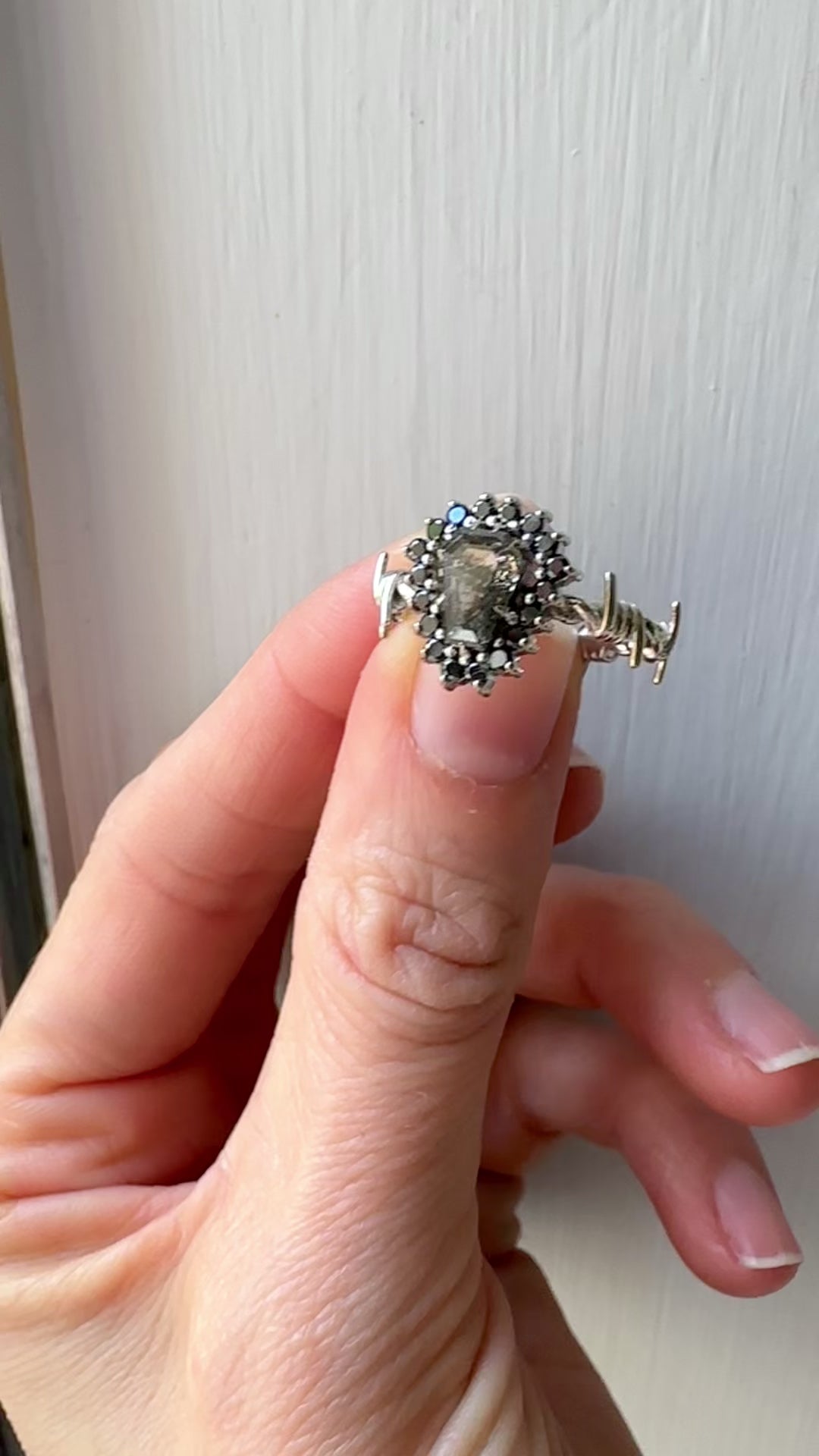 Due to the fact that the main stone on this ring is extremely unique, this ring is a one-of-a-kind.