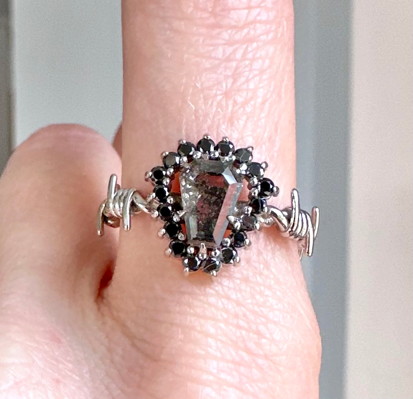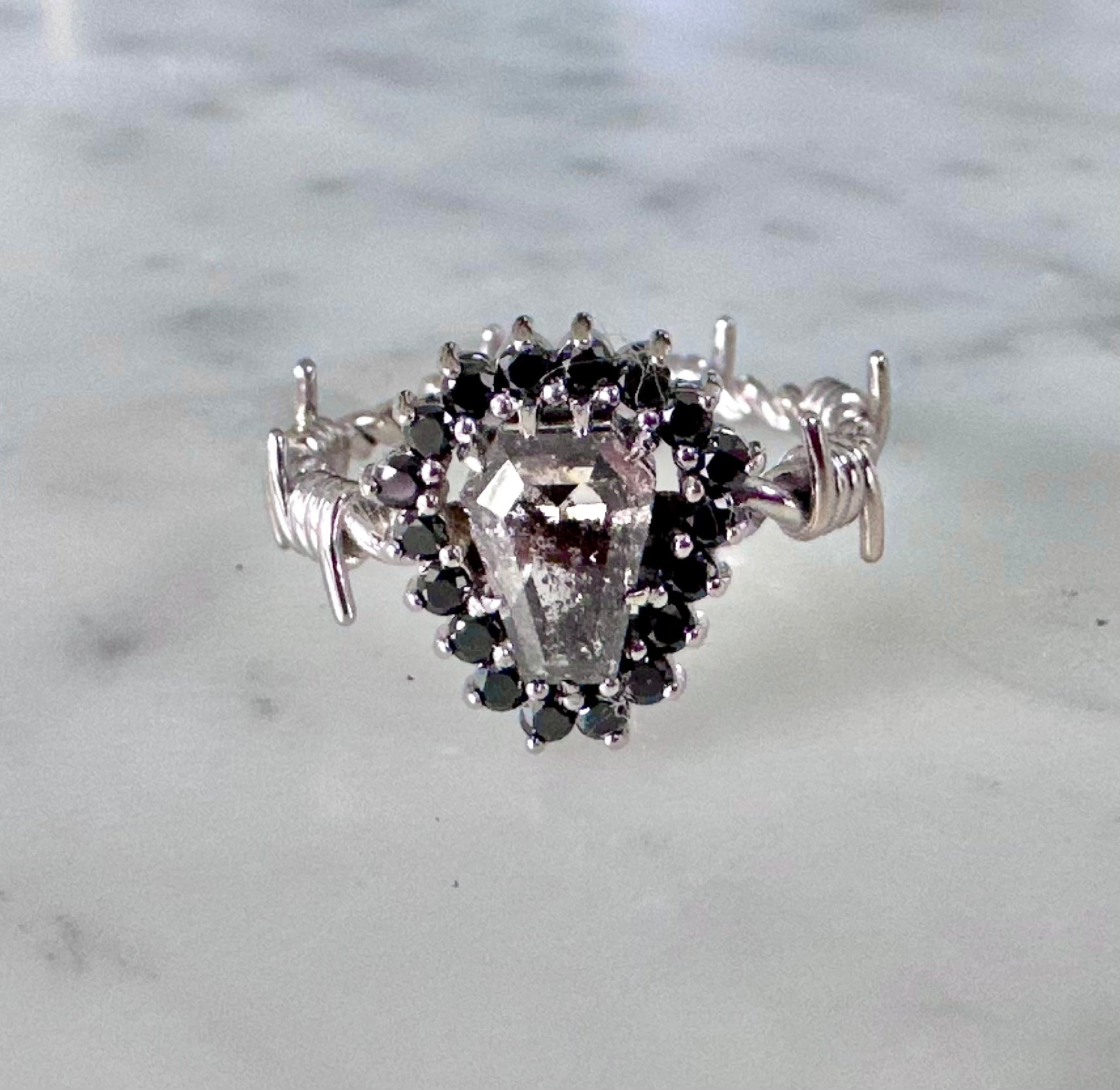 - 1.02 ct 7.30mm Coffin Cut Salt and Pepper Diamond