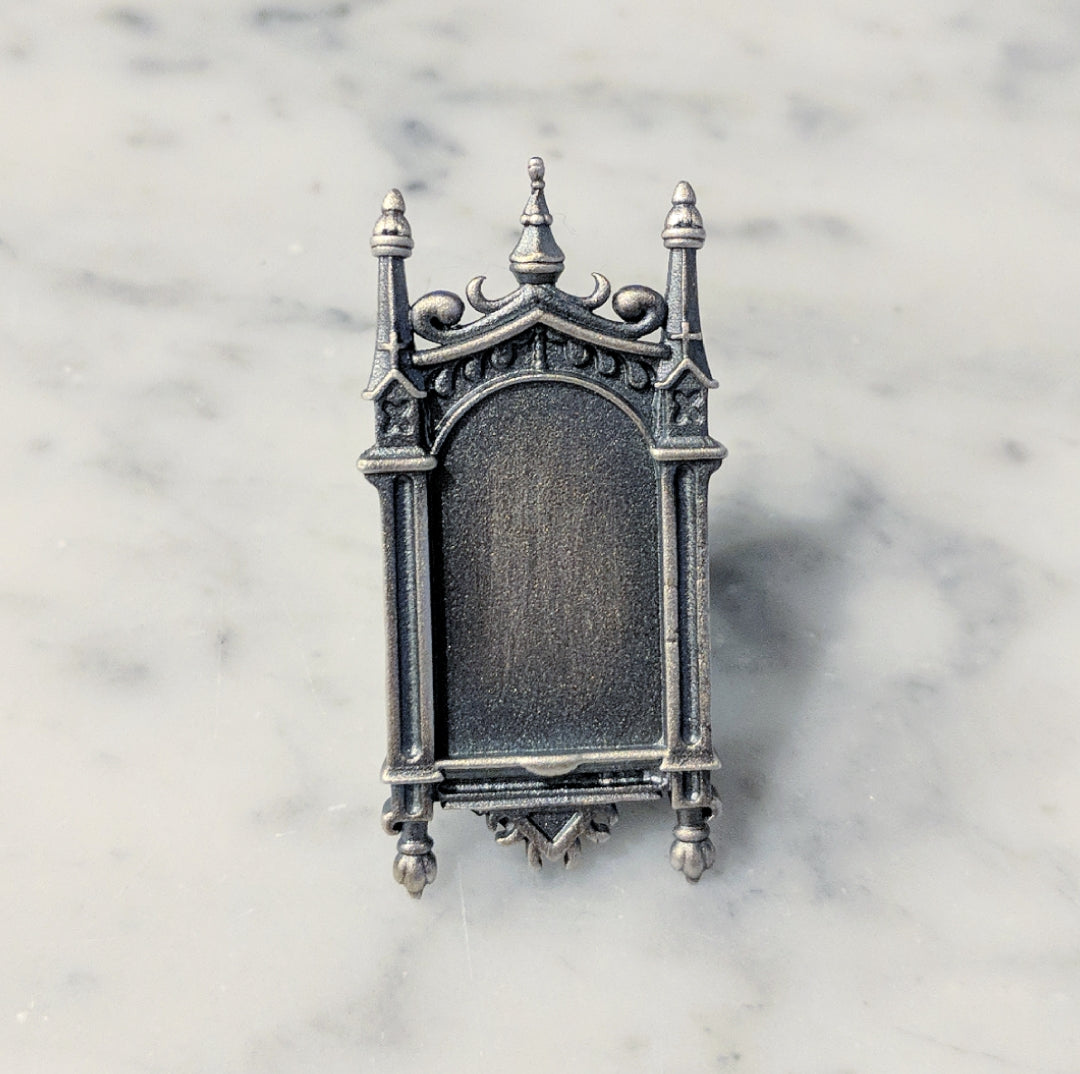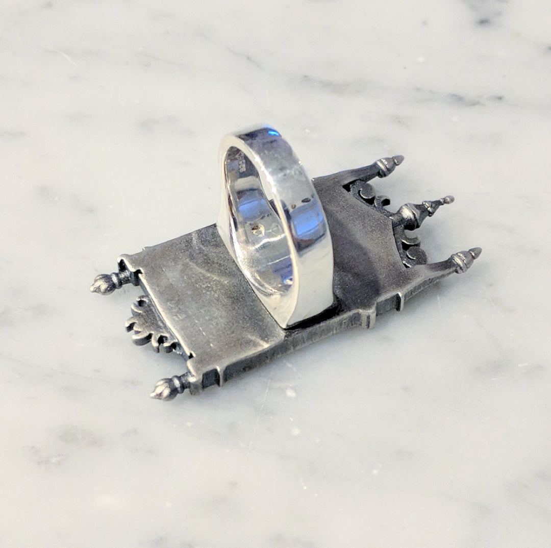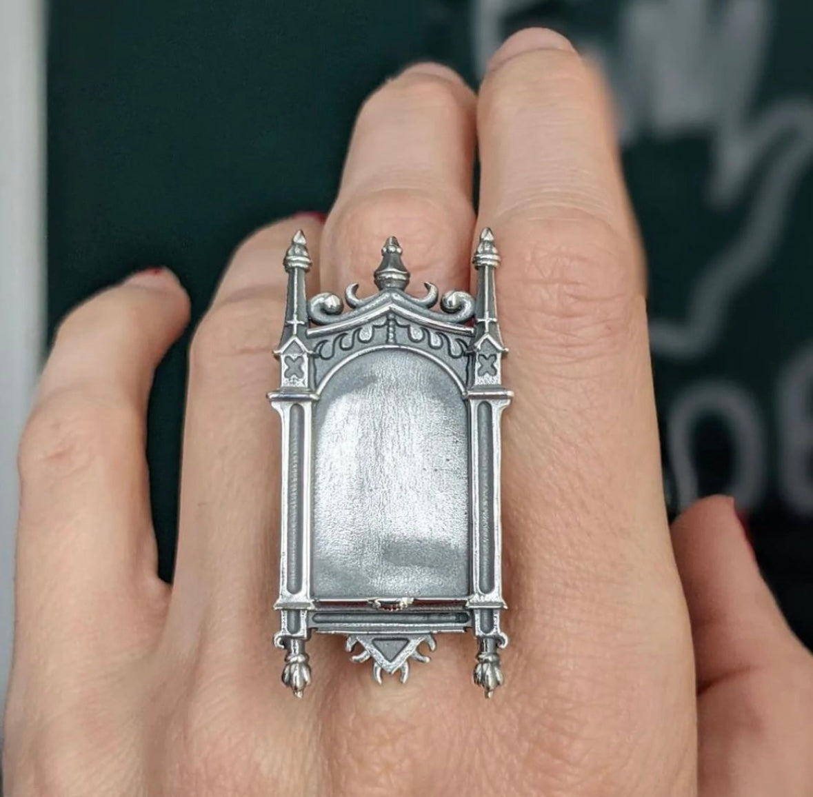Solid sterling silver Victorian style frame on a signet style ring band.
